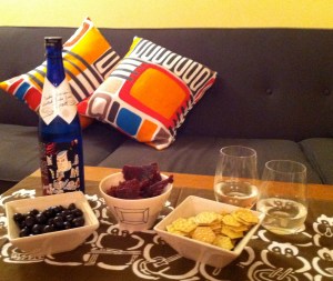 Taking this delightful tradition to heart I went to my local Trader Joe’s today and picked up a bottle of Trader Joe-san’s Junmai Ginjo Sake ($9.99) which is brewed in Japan by Oimatsu Shuzo, all and all not a bad Sake for the price. I also picked up three otsumami to go with my sake – the total was a wallet friendly twenty dollars and change.