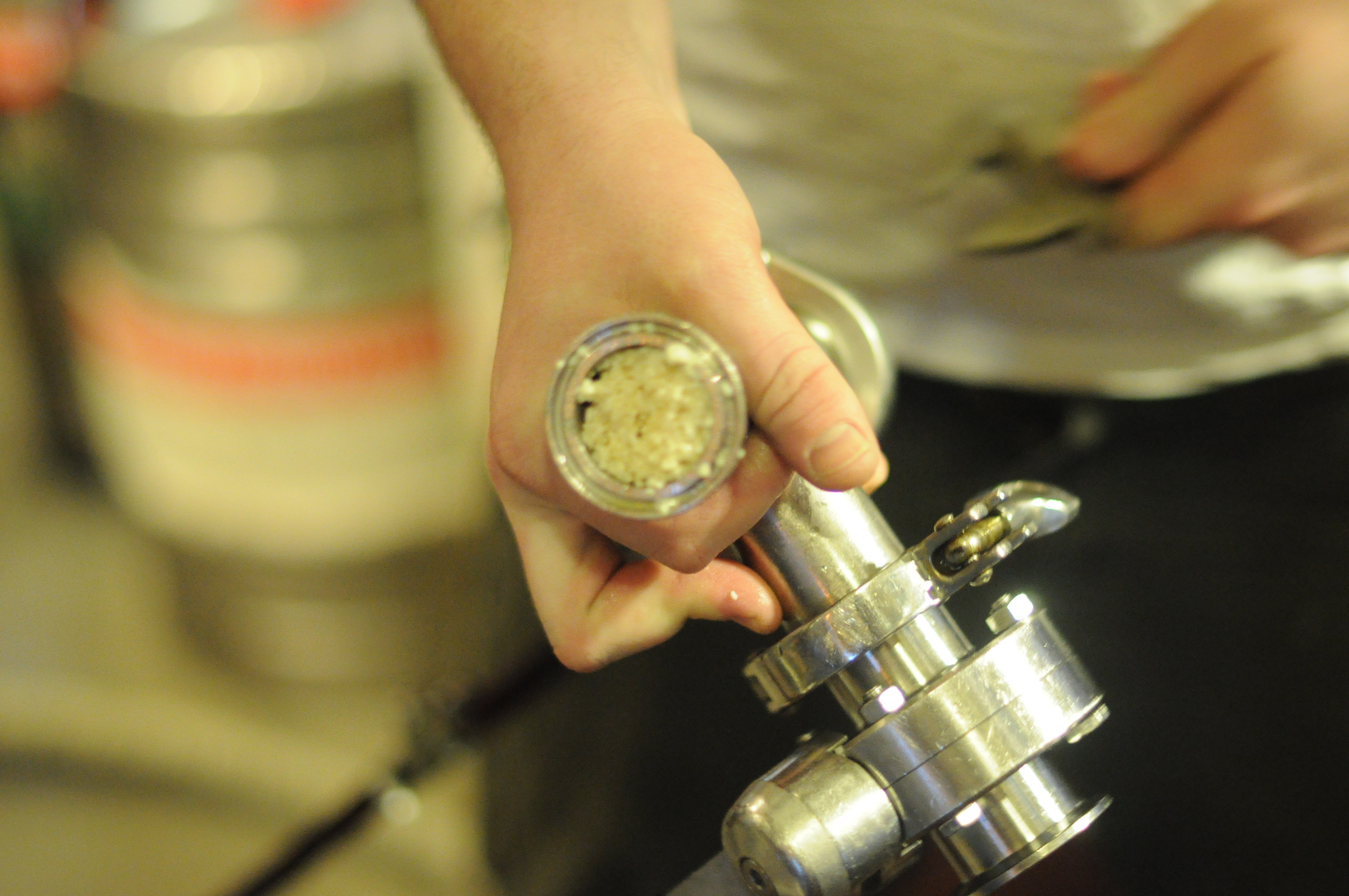 After several weeks our batch was at the height of fermentation with yeast health high and alcohol levels around 16% ABV. At this time we took the whole mash containing Sake, rice, koji, and plenty of yeast and pumped it over into a beer tank. To this tank we added 225 gallons of an unusual beer wort made with malted barley, rice, and brown rice syrup. This to me is the magic of our Sake/beer hybrid – the Sake yeast is strong in the Sake mash, but starting to succumb to the high levels of alcohol and getting tired. Adding the beer wort drops the alcohol levels down significantly and the yeast is re-invigorated to ferment the entire tank. The resulting hybrid is a true combination of Sake and beer brewing traditions.